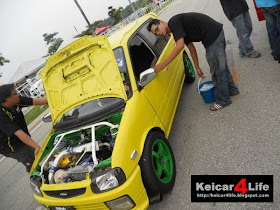 Machine own by Deris @ Kenzo , memang selalu la join drag merata2 kat semenanjung nih, start ngan machine 660t , cam biasa laa bila dah lali ngan kelajuan 660t ...trus upgrade 1000t untuk kekal memberi cabaran dalam kategori kcar yg memang rata2 machine yg join pakai blok 1000.